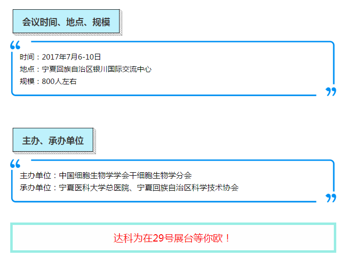 由中國細胞生物學學會干細胞生物學分會主辦,寧夏醫(yī)科大學總醫(yī)院和寧夏科學技術協(xié)會共同承辦的“中國干細胞第七屆年會”,將于2017年7月6日至10日在寧夏回族自治區(qū)銀川國際交流中心召開。本屆年會主題為:干細胞研究與轉化——破冰之旅。達科為也在本次會議中積極響應,達科為&PeproTech攜手合作,恭祝中國干細胞第七屆年會取得成功!