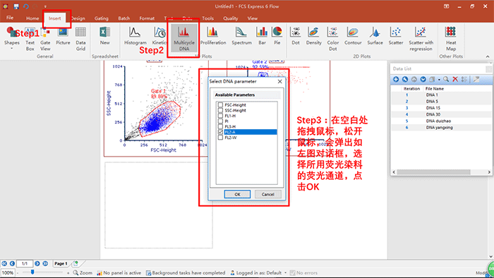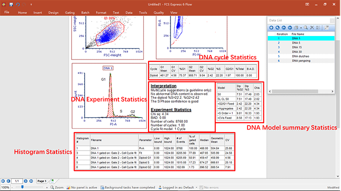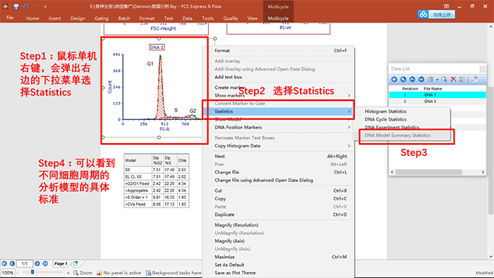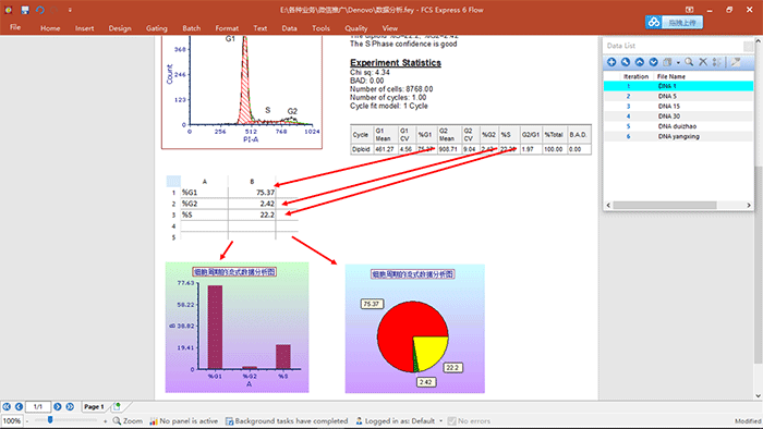 ? 演示內容:細胞周期數據的分析,關于細胞周期各個參數的調用,統(tǒng)計學圖表的建立