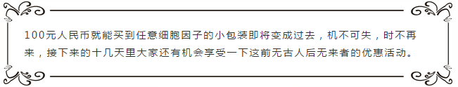 如何參加特惠活動,哈哈,我再叨叨最后一遍,第一步購買大包裝任意因子第二步備注我們的活動單號AC—2017即可享受100元就能買到SIZE A的細胞因子,只需要100元。