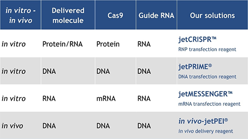 表1:專為CRISPR實(shí)驗(yàn)設(shè)計(jì)的轉(zhuǎn)染試劑