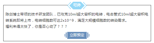 現(xiàn)在,在電轉(zhuǎn)這一細(xì)分的細(xì)胞生物學(xué)高科技領(lǐng)域,中國(guó)人的科研力量已經(jīng)出現(xiàn)!已經(jīng)落地實(shí)現(xiàn)商業(yè)化。已經(jīng)加入激烈的市場(chǎng)競(jìng)爭(zhēng),正面挑戰(zhàn)amaxa技術(shù)!已經(jīng)在美國(guó)和中國(guó)多個(gè)重要科研院所(都是具有多臺(tái)amaxa設(shè)備,多年amaxa使用經(jīng)驗(yàn)的實(shí)驗(yàn)室)得以驗(yàn)證,成功改寫(xiě)了用戶的看法,實(shí)現(xiàn)了商業(yè)市場(chǎng)競(jìng)爭(zhēng)的勝利。