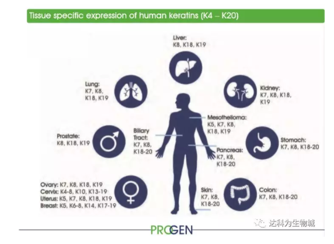 Progen可提供130多種Keratins抗體以及標(biāo)準(zhǔn)品, 抗體包括單抗、多抗,可用于IHC/WB多種應(yīng)用。