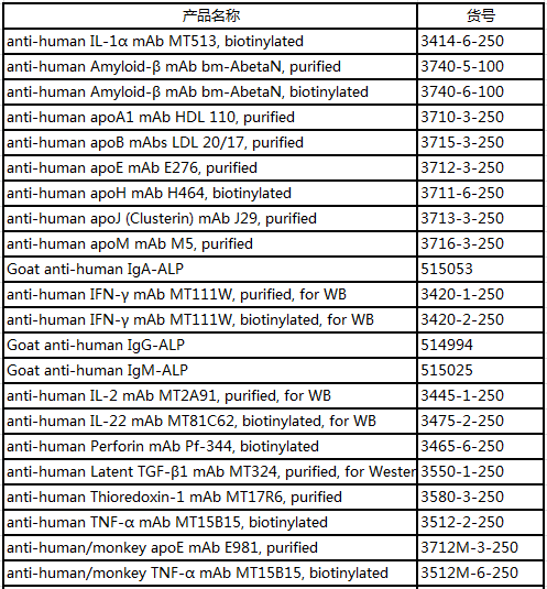 而今天小達(dá)君主要給大家介紹一下Mabtech另外一條產(chǎn)品線---抗體