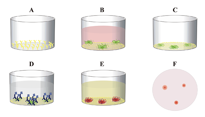 酶聯(lián)免疫斑點檢測(ELISPOT)是將細胞培養(yǎng)技術和ELISA技術相結合,可以原位地檢測培養(yǎng)細胞體外分泌蛋白的高靈敏分析技術。該技術集高靈敏度、高可信度、高通量、單細胞水平、功能性檢測與低成本等諸多優(yōu)點于一身。根據(jù)研究目的及檢測蛋白類型,可分為T細胞ELISPOT和B細胞ELISPOT兩種類型。其中T細胞ELISPOT主要用于檢測刺激后細胞所分泌的痕量細胞因子,而B細胞ELISPOT主要用于檢測抗體分泌B細胞的頻率。ELISPOT是用抗體或抗原捕獲培養(yǎng)細胞分泌的蛋白,并以酶聯(lián)斑點顯色的方法將其表現(xiàn)出來。