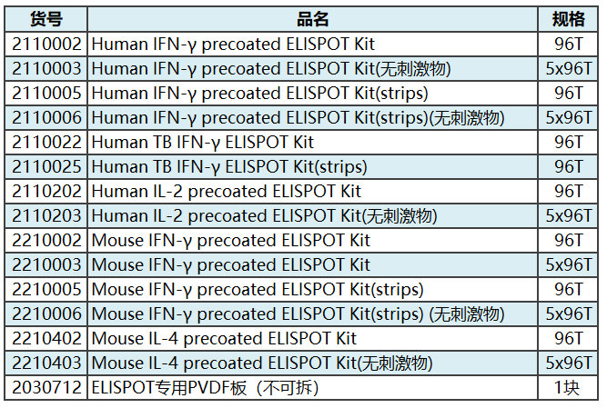 達優(yōu)? ELISPOT產(chǎn)品列表
