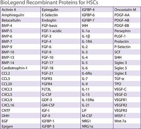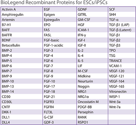 BioLegend提供多種重組蛋白,可幫助維持胚胎干細(xì)胞、誘導(dǎo)多能干細(xì)胞、造血干細(xì)胞、間充質(zhì)干細(xì)胞和神經(jīng)干細(xì)胞的多能性或誘導(dǎo)它們分化。下面我們一起了解一下重組蛋白在幾種干細(xì)胞中的應(yīng)用。