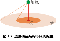 ELISPOT板膜,就會(huì)被板膜上的包被抗體捕獲。在所有從細(xì)胞到斑膜的路徑中,有條路徑短,這就是位于細(xì)胞正下方到板膜的垂直距離。路徑越短,擴(kuò)散中耗散損失就越少,到達(dá)該點(diǎn)的細(xì)胞因子就越多,將來(lái)顯色的時(shí)候顏色就越深。以垂直距離點(diǎn)為圓心,向外畫(huà)一系列的同心圓,同心圓的直徑越大,細(xì)胞因子擴(kuò)散的距離就越長(zhǎng),耗散越多,到達(dá)的細(xì)胞因子就越少,顏色就越淺。當(dāng)超過(guò)一定距離之后,擴(kuò)散到達(dá)的細(xì)胞因子就減少到背景水平了,這就是斑點(diǎn)的邊界。
